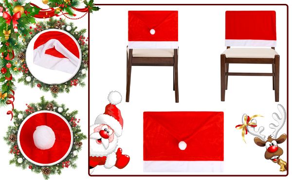 Zestaw zawiera: Zestaw 4 sztuk pokrowców na krzesła w czerwonych kapeluszach.