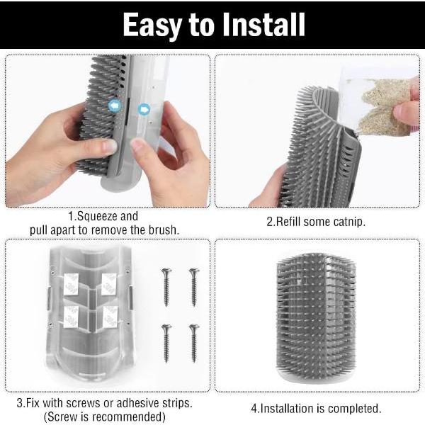 Koty mogą potrzebować trochę czasu, aby dostosować się do tych narożnych szczotek dla kotów, a można zwiększyć ich zainteresowanie, dodając szczyptę kocimiętki (brak w zestawie).