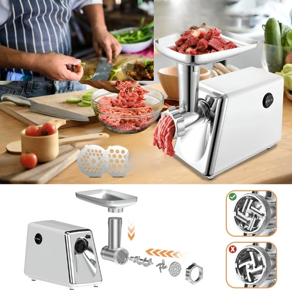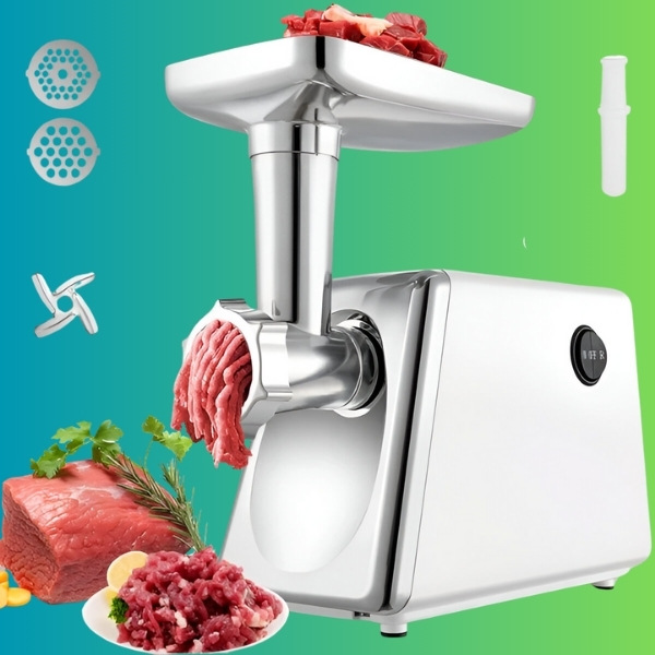 📦 Elektryczna maszynka do mielenia mięsa + popychacz do żywności + 2x płytki tnące + 1x ostrze