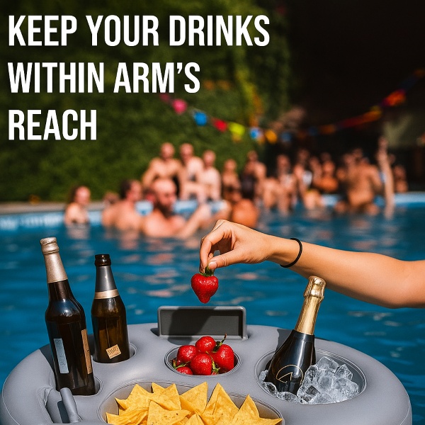 Spraw, aby każda chwila była bardziej zabawna i niezapomniana dzięki temu pływającemu tacku, niezbędnemu towarzyszowi przy basenie do jedzenia i picia.