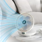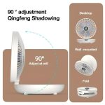 Ten zasilany akumulatorowo wentylator jest wyposażony w baterię o dużej pojemności 5 V / 2 A, która potrzebuje tylko 3-4 godzin do pełnego naładowania i może pracować przez 4-12 godzin w zależności od ustawienia prędkości wiatru.