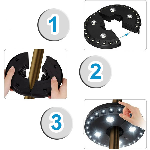 2-w-1 lampa LED do parasola | BRELLAGLO